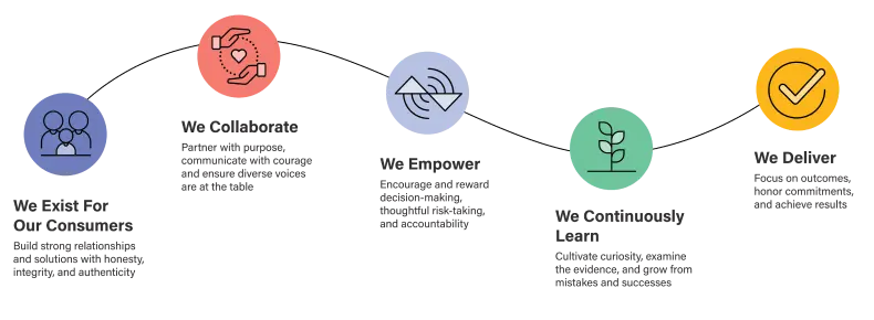 - We Collaborate: Partner with purpose, communicate with courage, and ensure diverse voices are at the table.